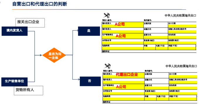 ①自营出口模式:境内发货人与生产销售单位保持一致;企业以自身名义完成全流程出口操作。