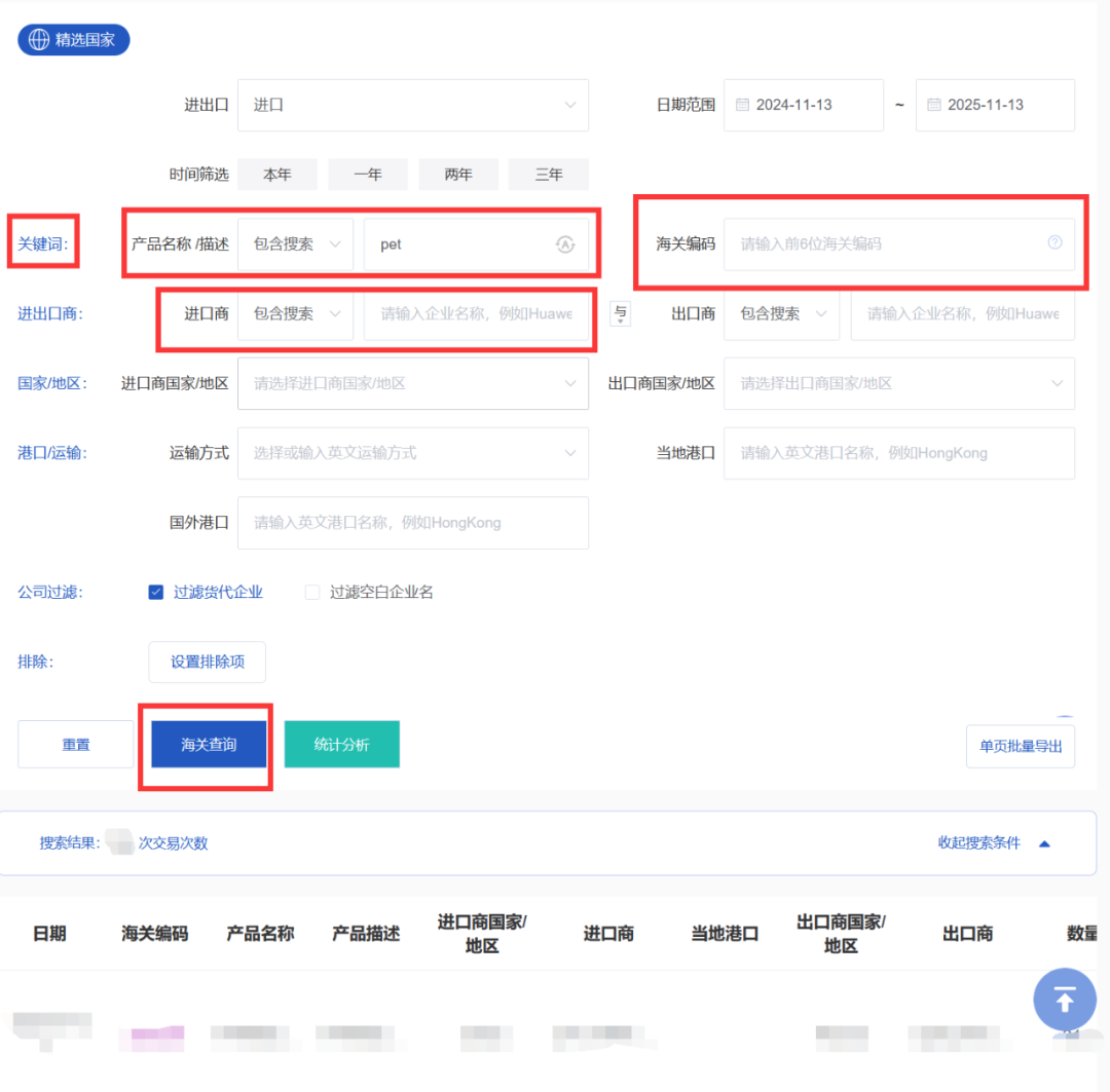 搜索便捷:支持关键词、公司名称、HS编码等多种搜索方式,快速定位目标客户。