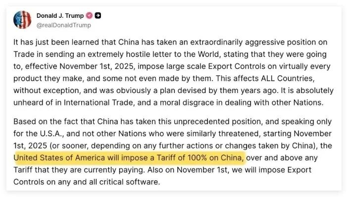 10月12日,中国商务部进一步回应美国的贸易行径,指出美方管制清单物项远超中方,强调中方的反制措施“必要且正当”。10月14日,中美船舶港口费措施同步生效,中方收费标准为每净吨400元人民币,覆盖美资持股25%以上的船舶,标志着贸易战进入实质性对抗阶段。美国此前宣布对进入美国港口的中国船舶征收额外费用,中国此次的港口费反制举措,与美国的行动形成直接对垒,进一步加剧了双方在航运领域的摩擦,也凸显出贸易战的激烈程度。